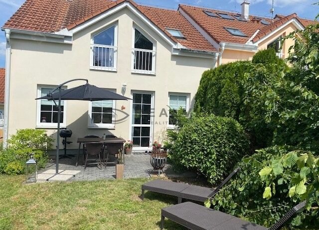 Nabízíme k pronájmu kompletně zařízený, řadový, rodinný dům (krajní). Dispozice 4+kk+garáž, užitná plocha cca 130 m2. Součástí pronájmu je i krásná zahradoa o rozloze cca 310 m2. Dům se nachází v klidné lokalitě Hluboké nad Vltavou, ulice U Parku. Za vchodovými dveřmi je chodba s malou koupelnou, WC a technickou