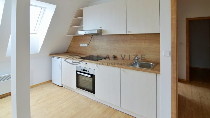 Pronájem novostavby moderního bytu 1+kk o celkové výměře 32,1 m2, ulice Hornická, Dobrá Voda u Českých Budějovic. Byt se nachází v prvním patře zděného domu a je orientovaný na západ. Dispoziční řešení: předsíň 3,2 m2, obývací pokoj s kuchyní 20,9 m2 (nová kuchyňská linka s vestavěnými spotřebiči - trouba, sporák,